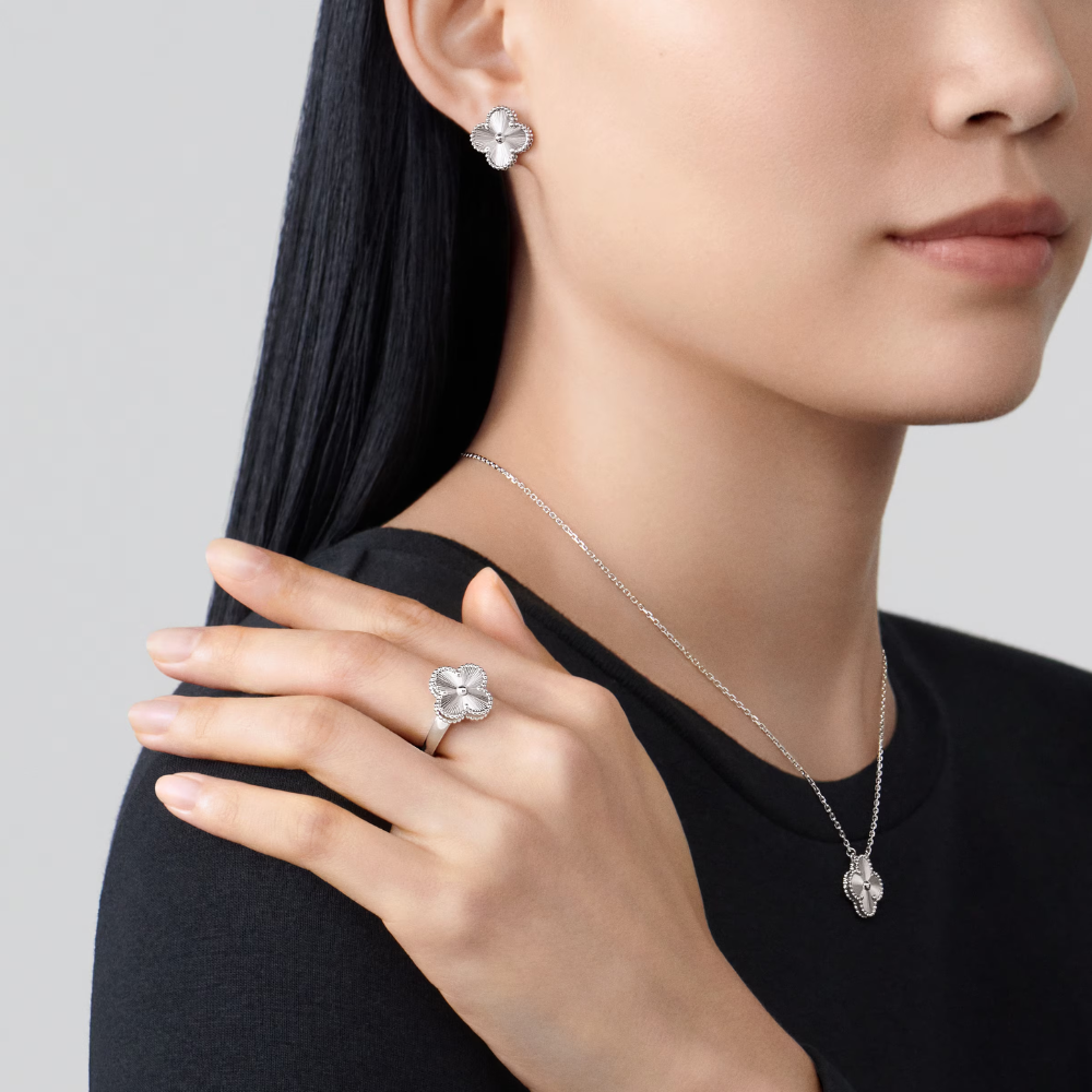These clover leaf earrings are designed to symbolize luck, harmony, and refined beauty.