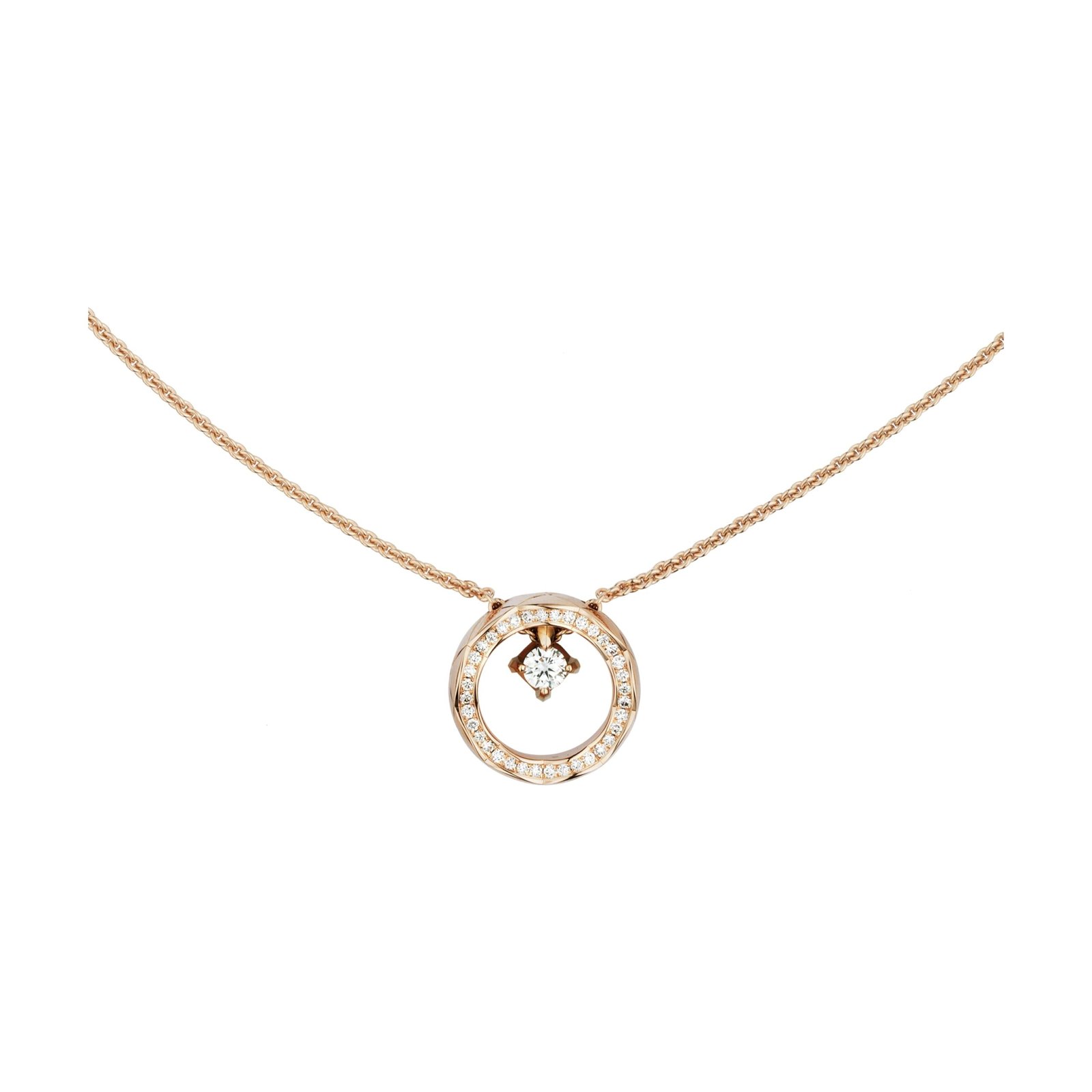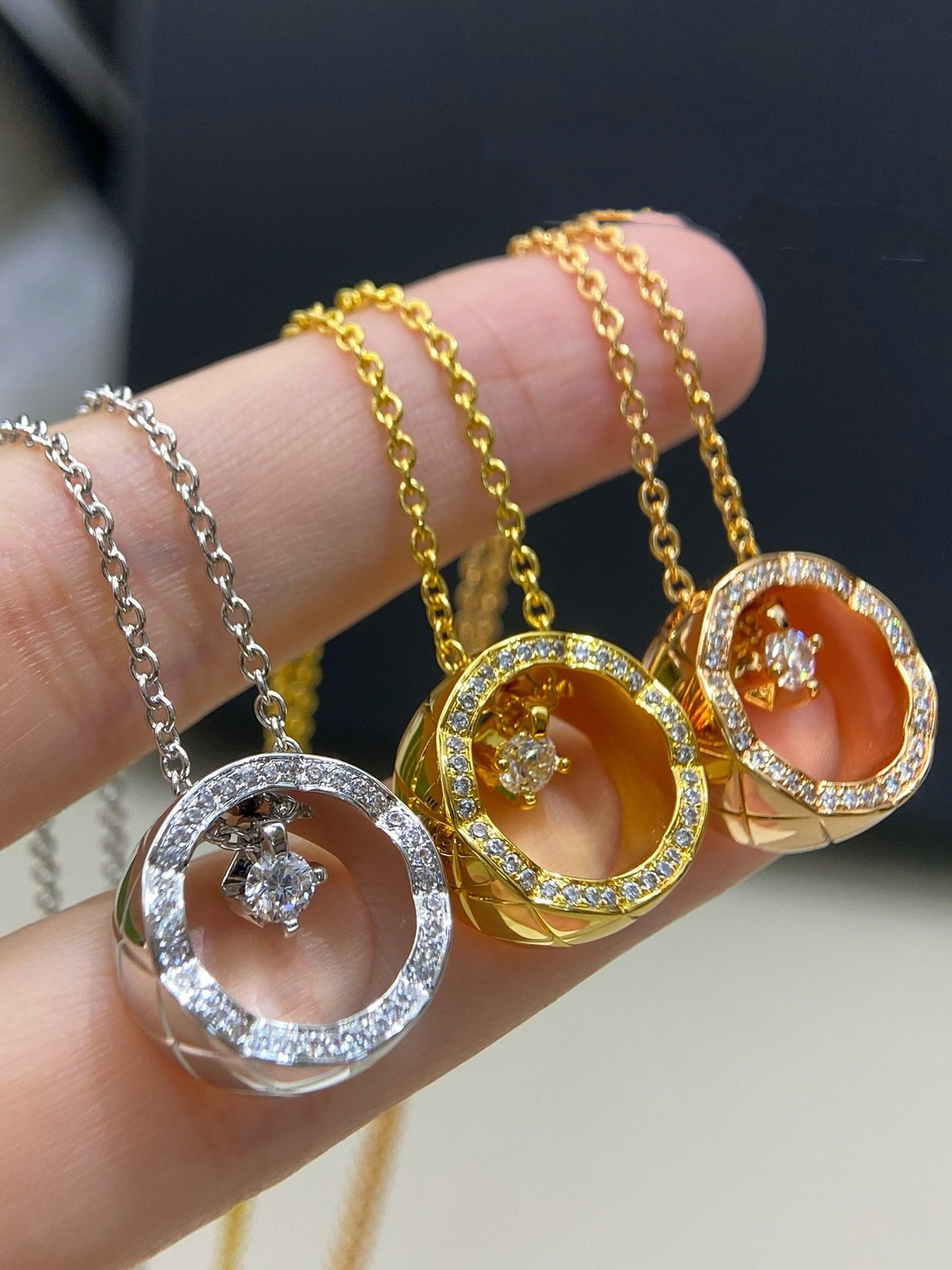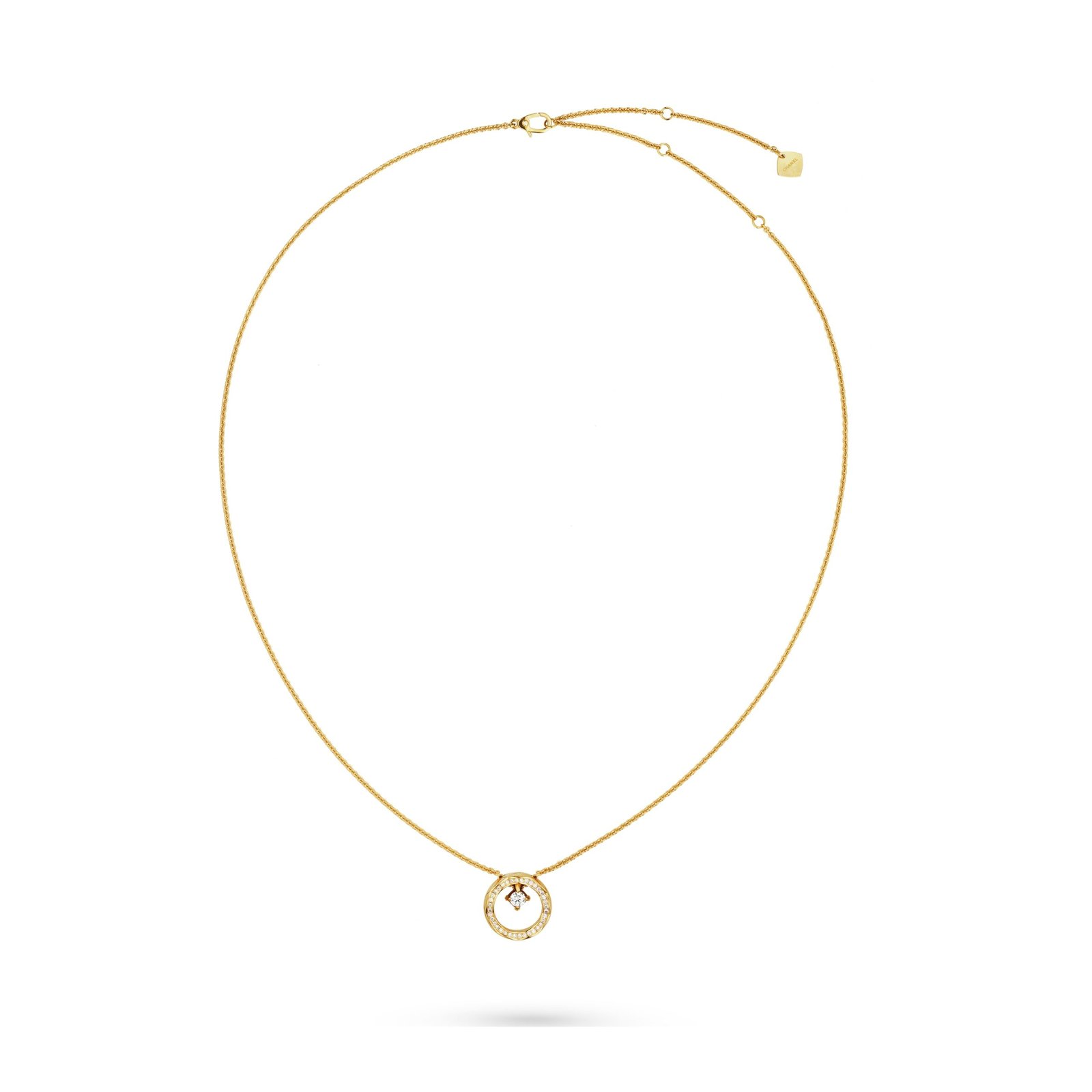 18K gold-plated circle pendant necklace with cubic zirconia. Adjustable 15–16.14 inch chain.