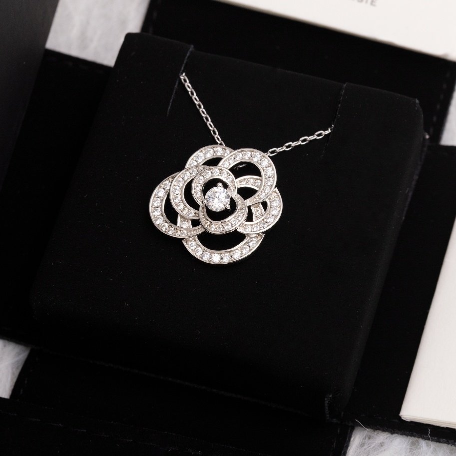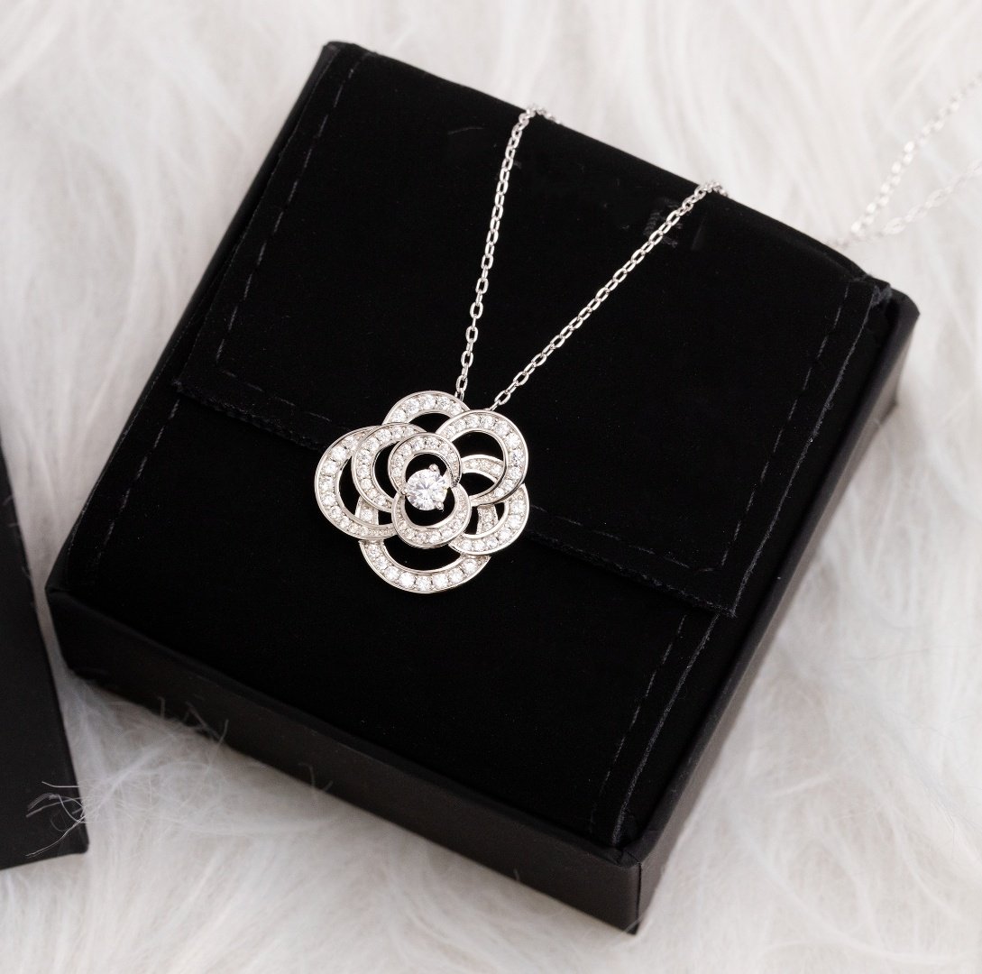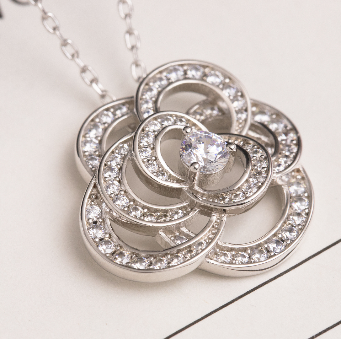 This floral motif pendant necklace features a refined hollow design inspired by petal structures, accented with sparkling cubic zirconia for subtle brilliance.