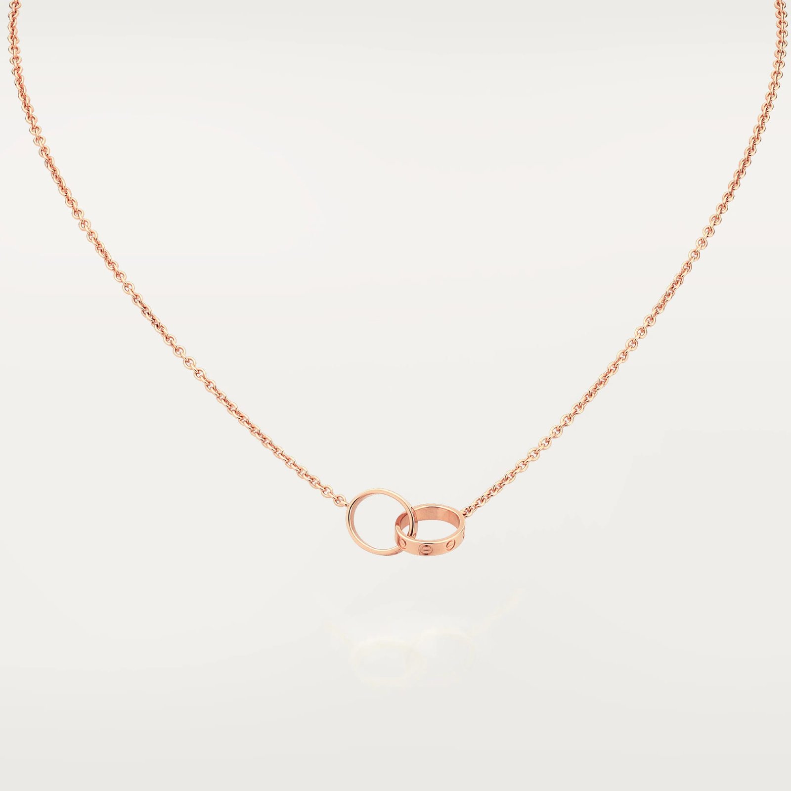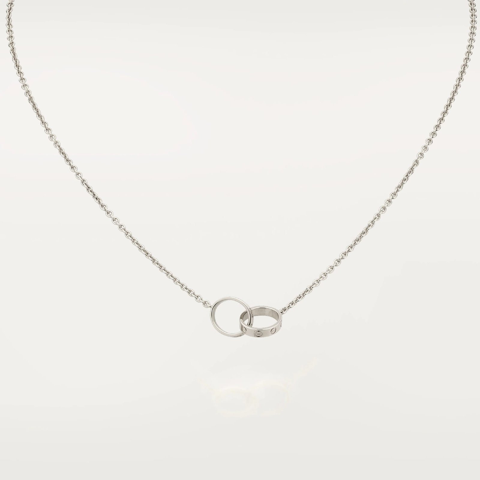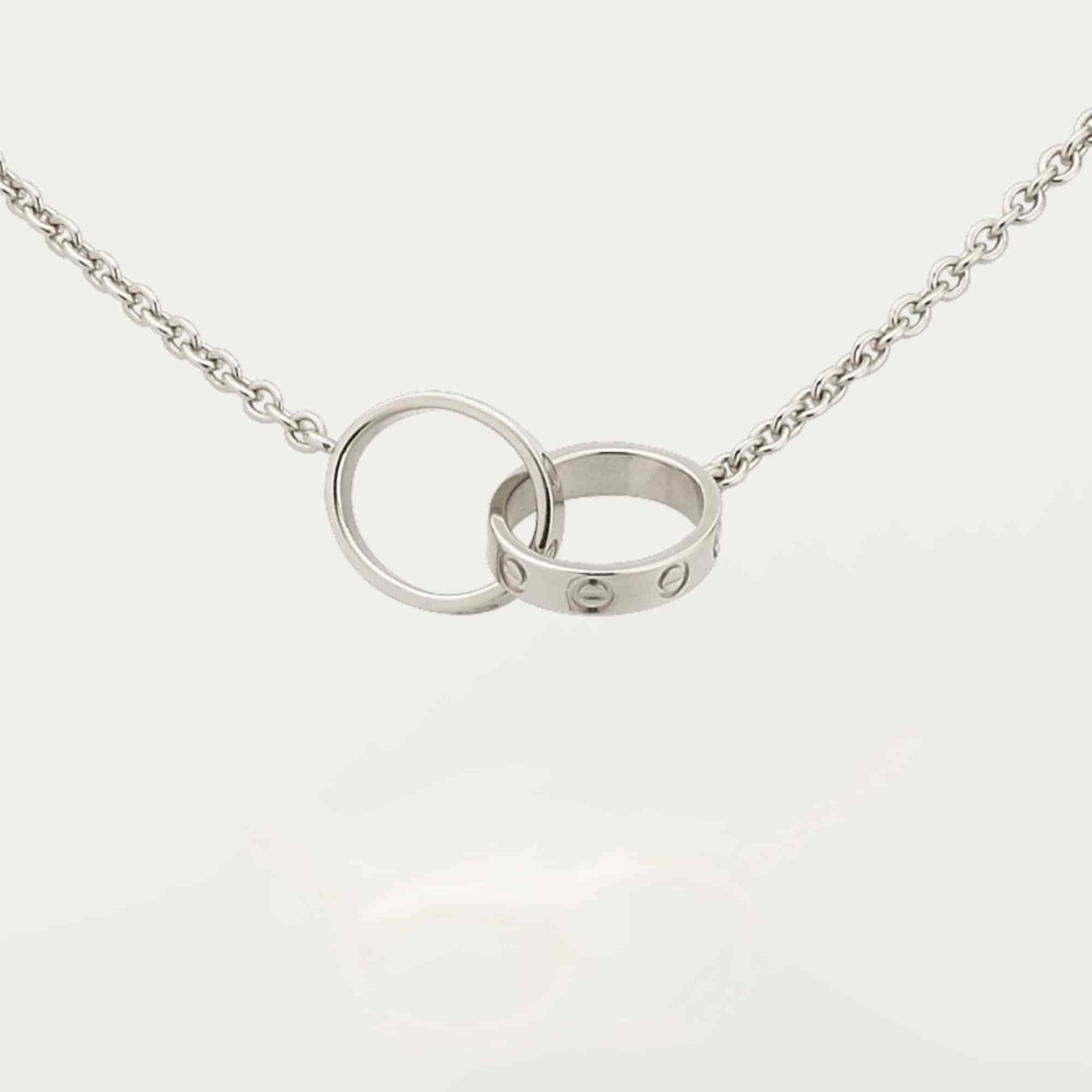 This elegant interlocking double ring necklace features a refined layered design that adds depth and modern character to a minimalist silhouette.