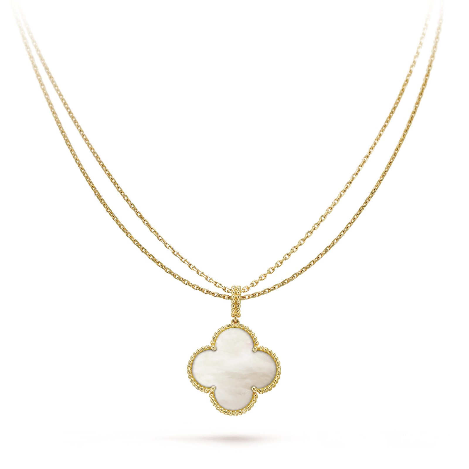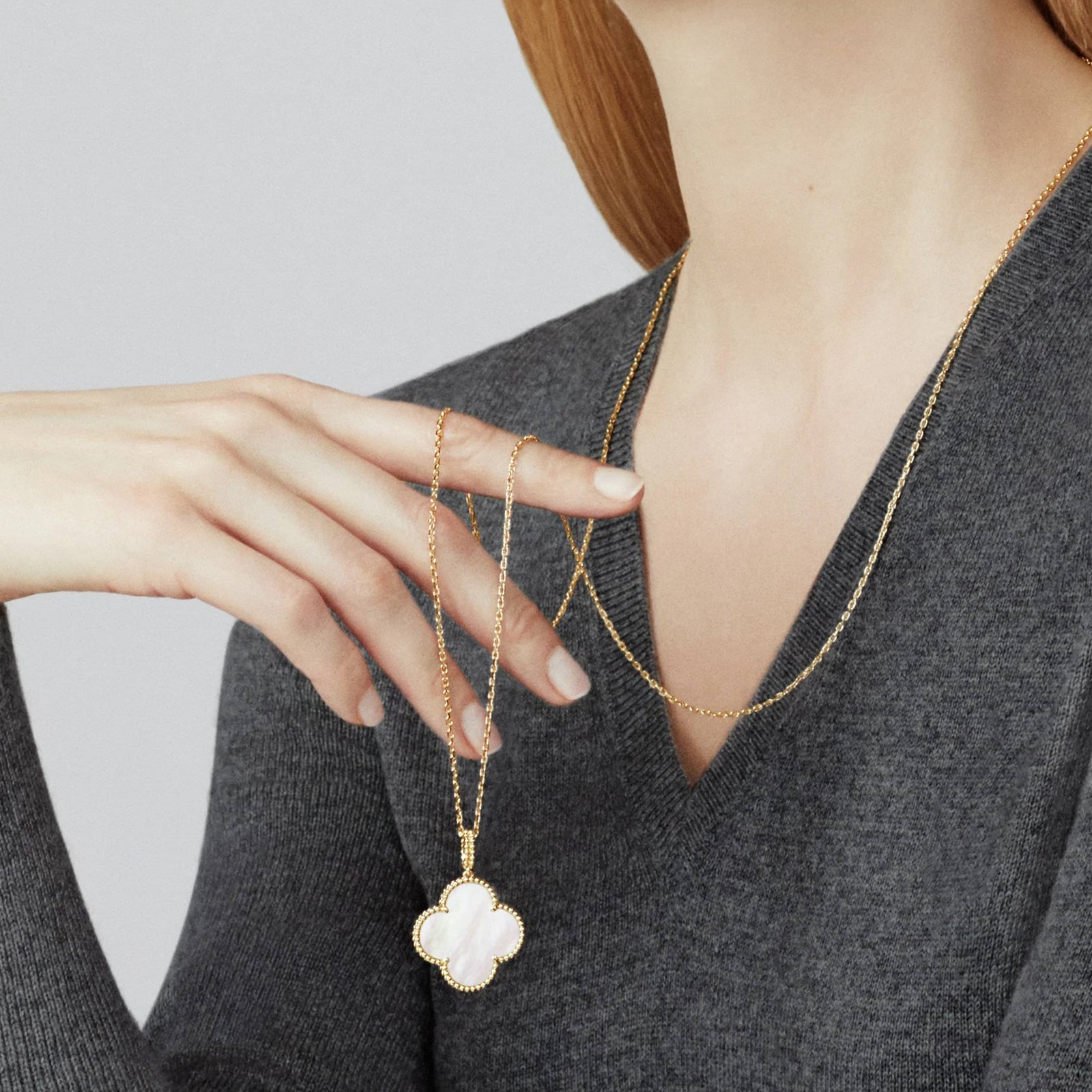 Silver and Mother-of-pearl Gold-Plated Clover Y Necklace | 925 Sterling Silver