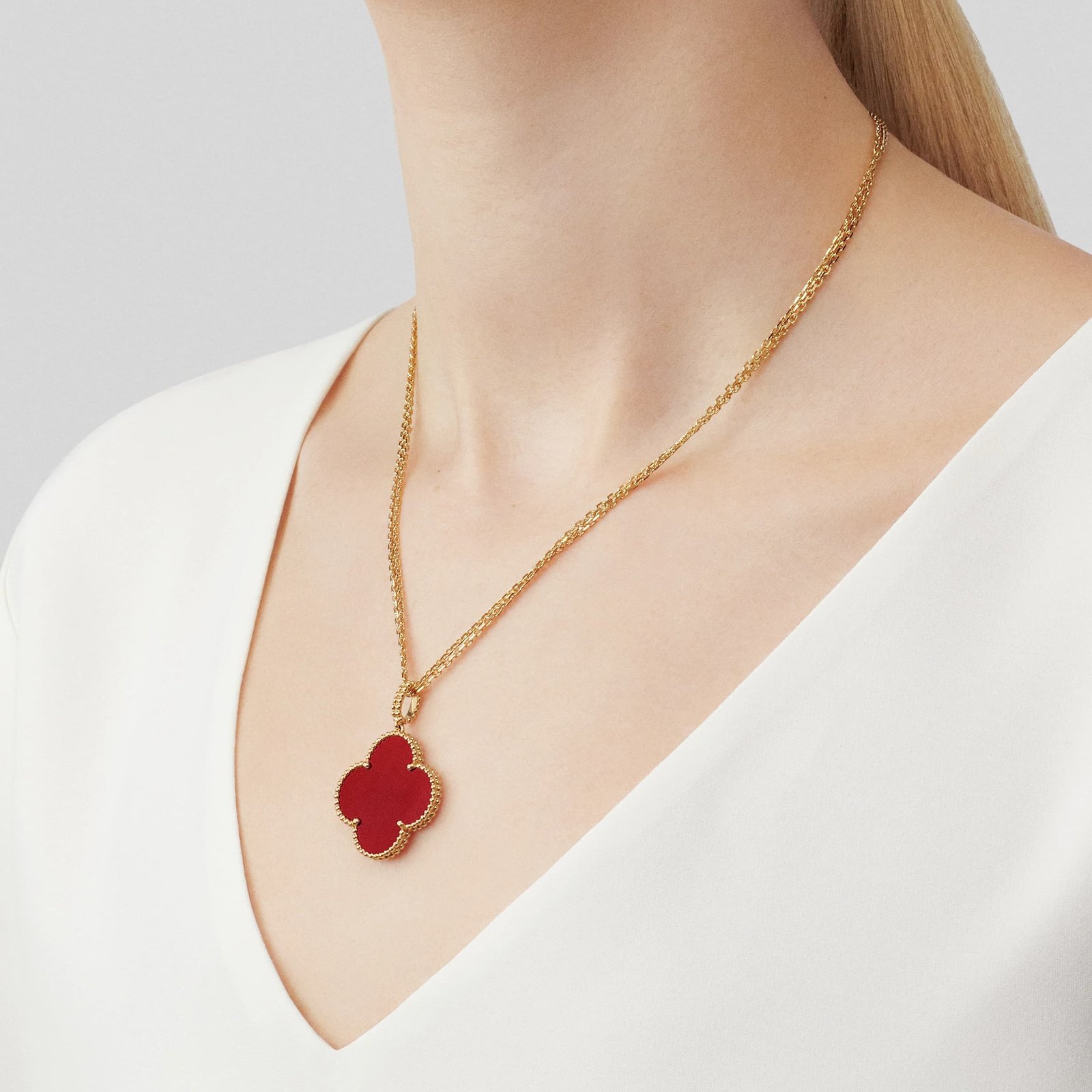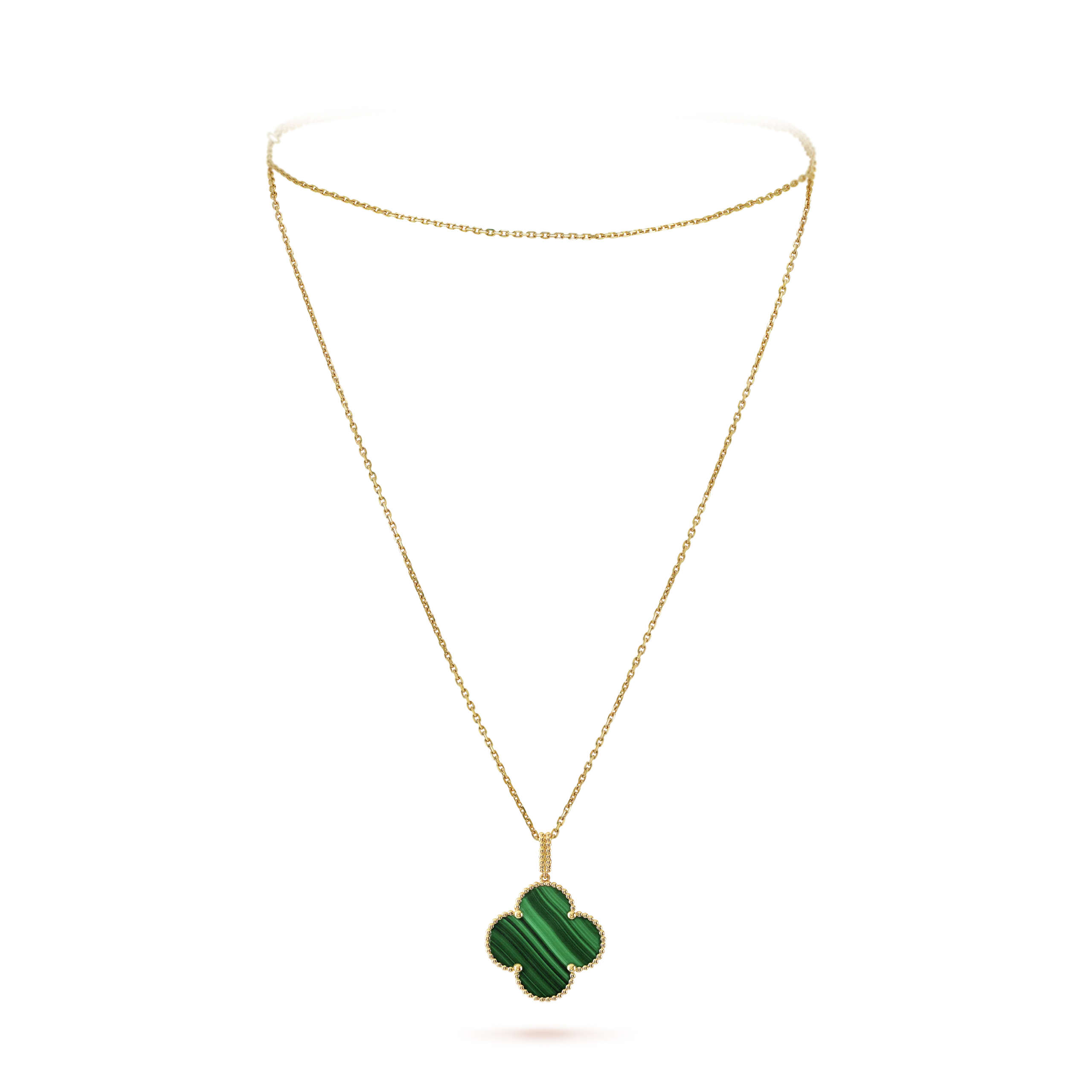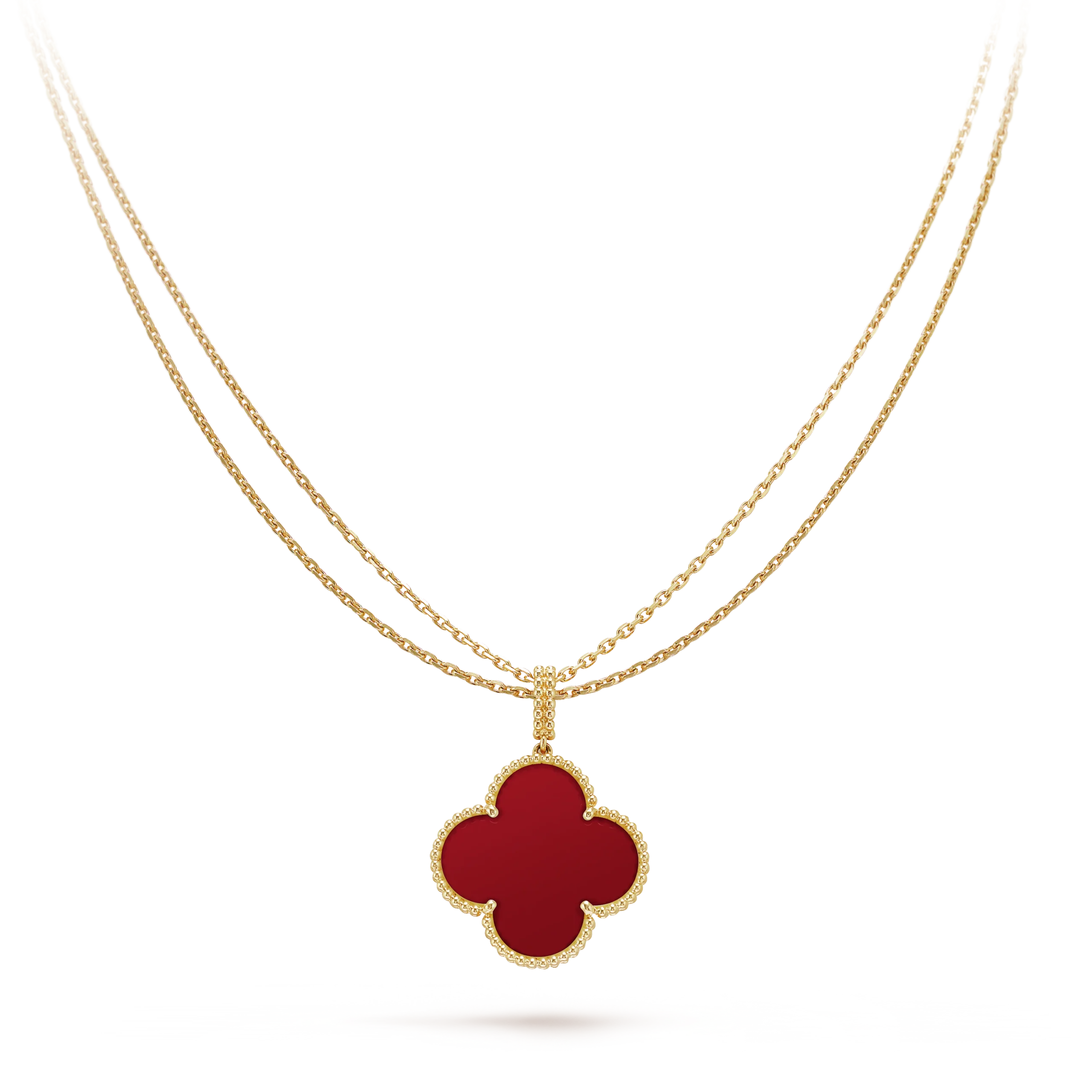 This elegant motif pendant long necklace features a refined symbolic design suspended from an elongated chain, creating a graceful and timeless silhouette.