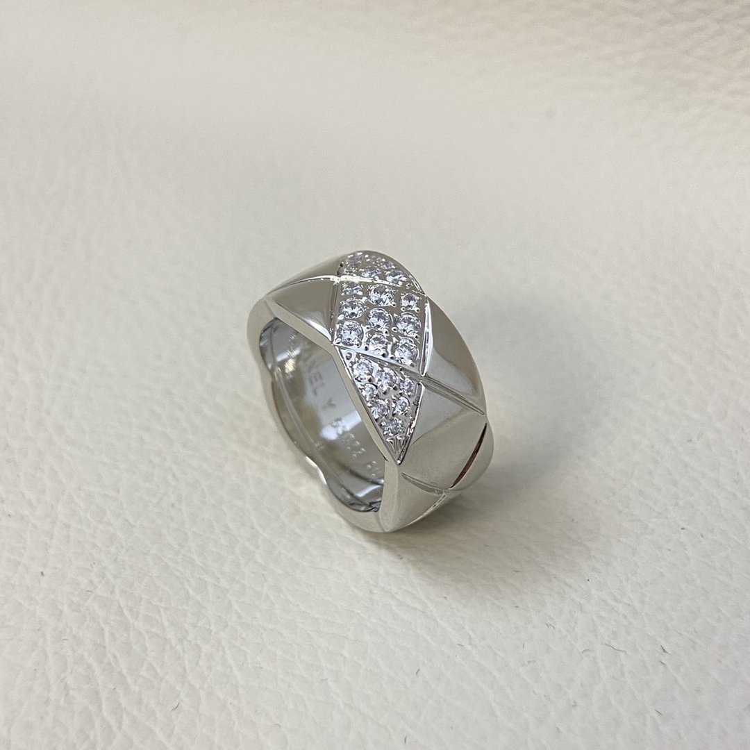 This quilted texture ring features a refined geometric engraving combined with a full cubic zirconia inlay, offering a bold yet balanced design with modern elegance.