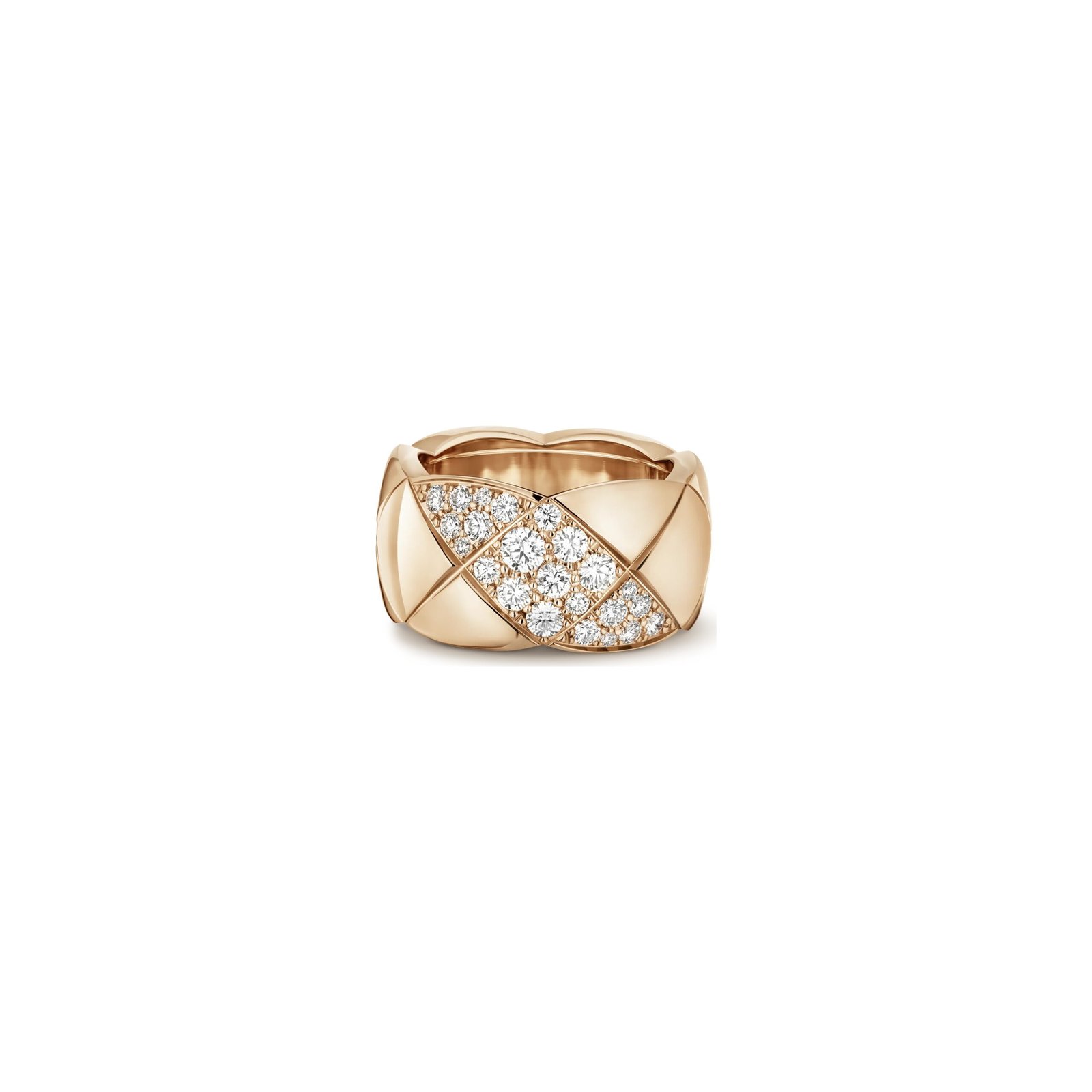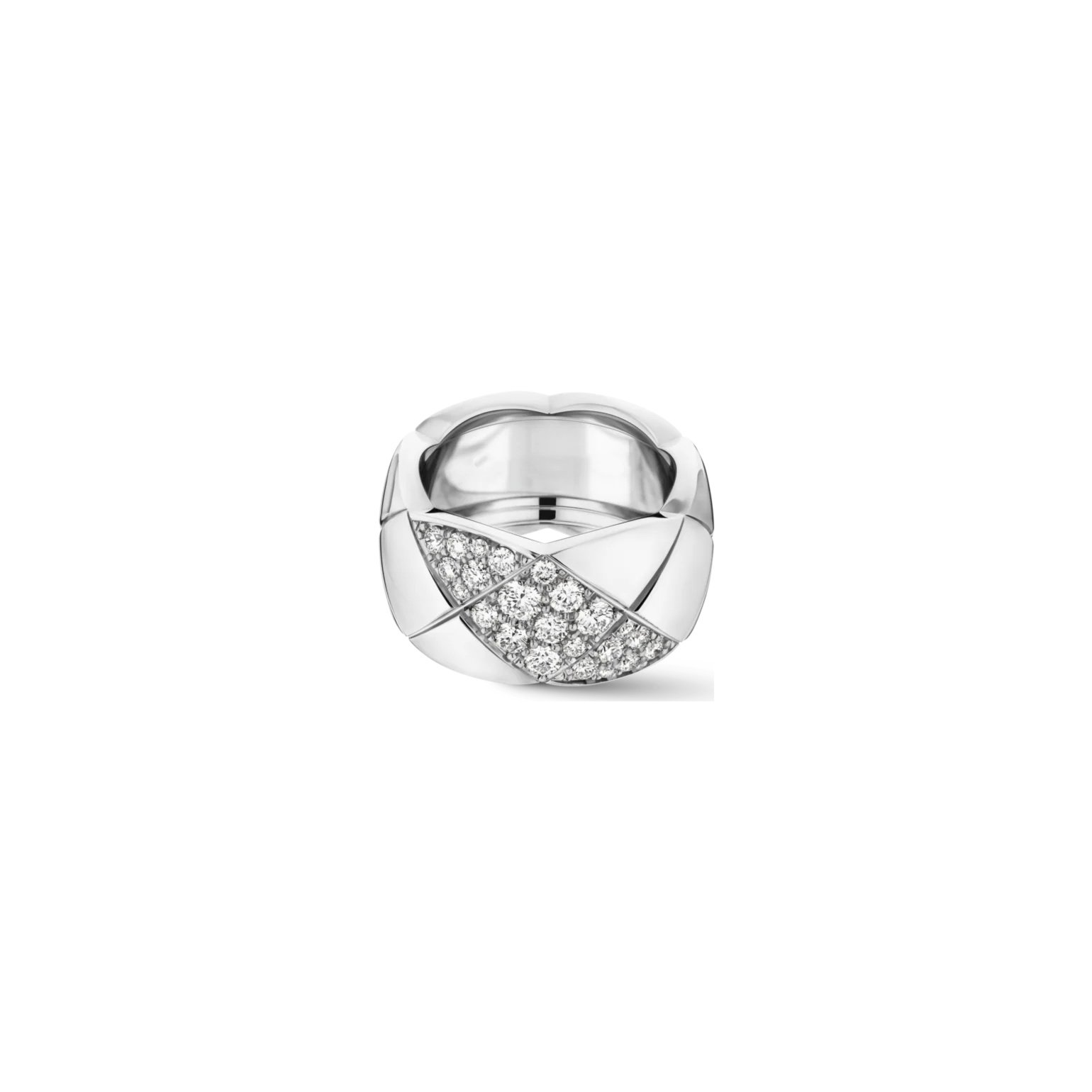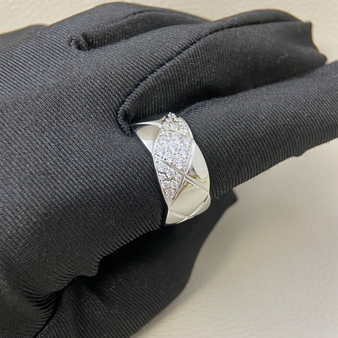 The fully set zirconia stones add consistent sparkle across the band, while the quilted pattern creates depth and visual structure without overwhelming the design.