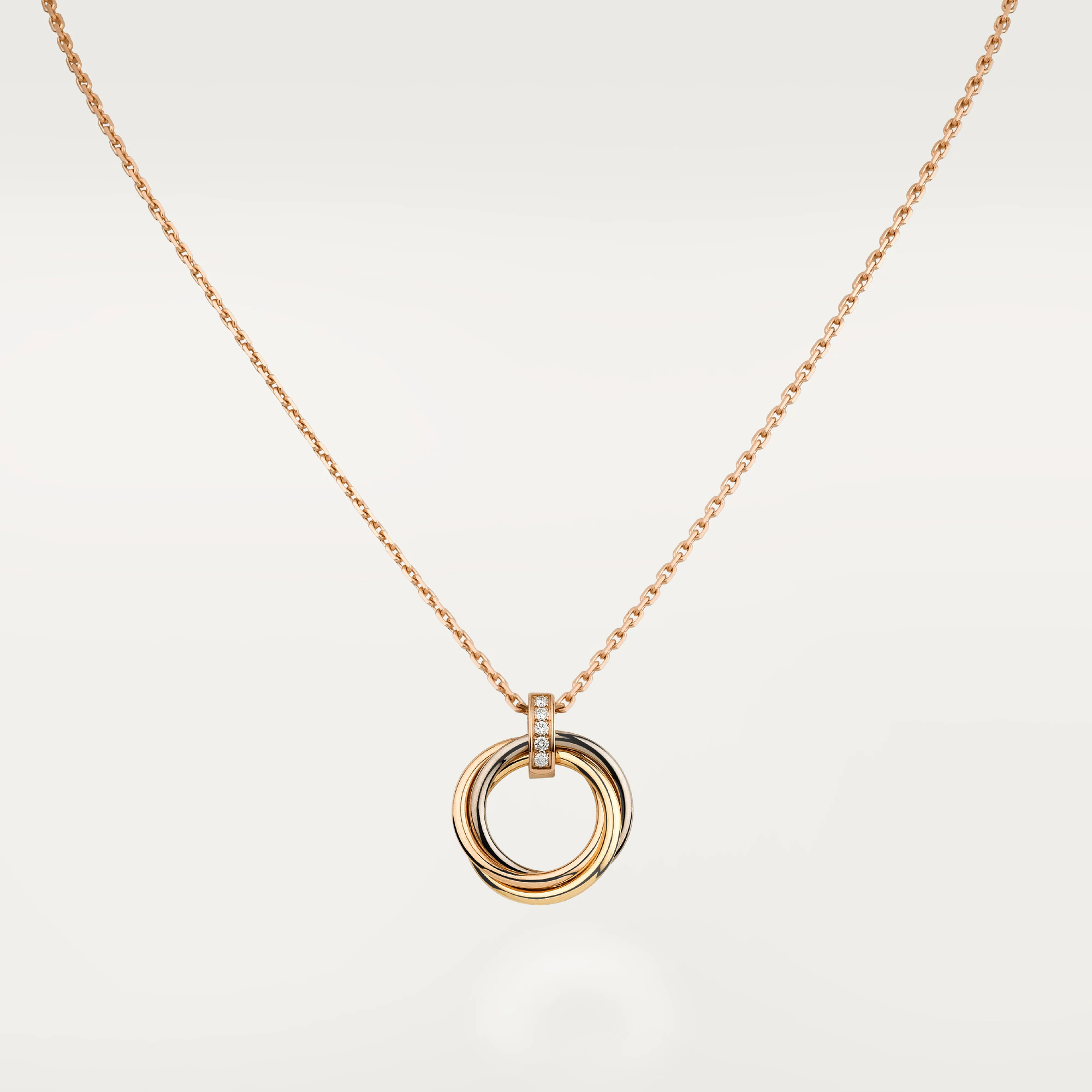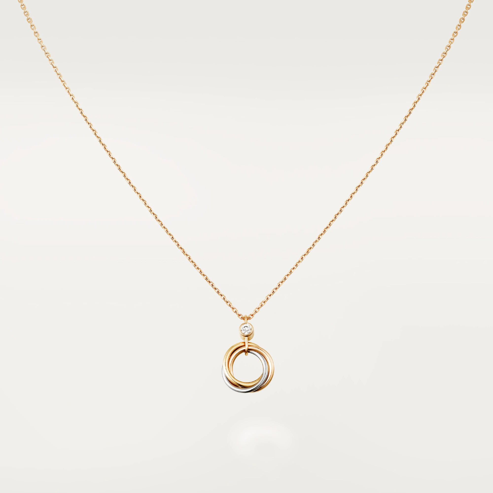 18K gold-plated pendant necklace featuring three interlocking circles with cubic zirconia accents.