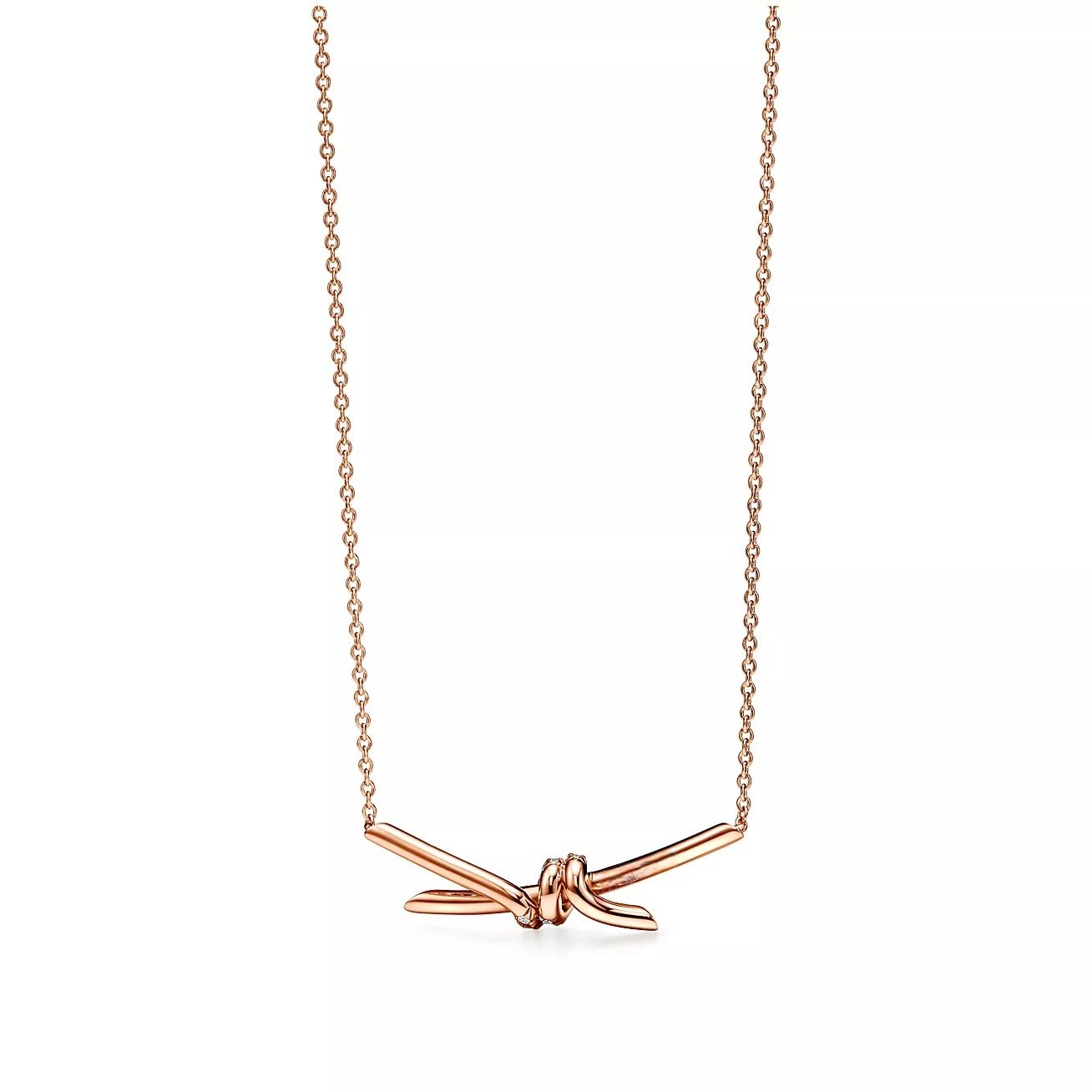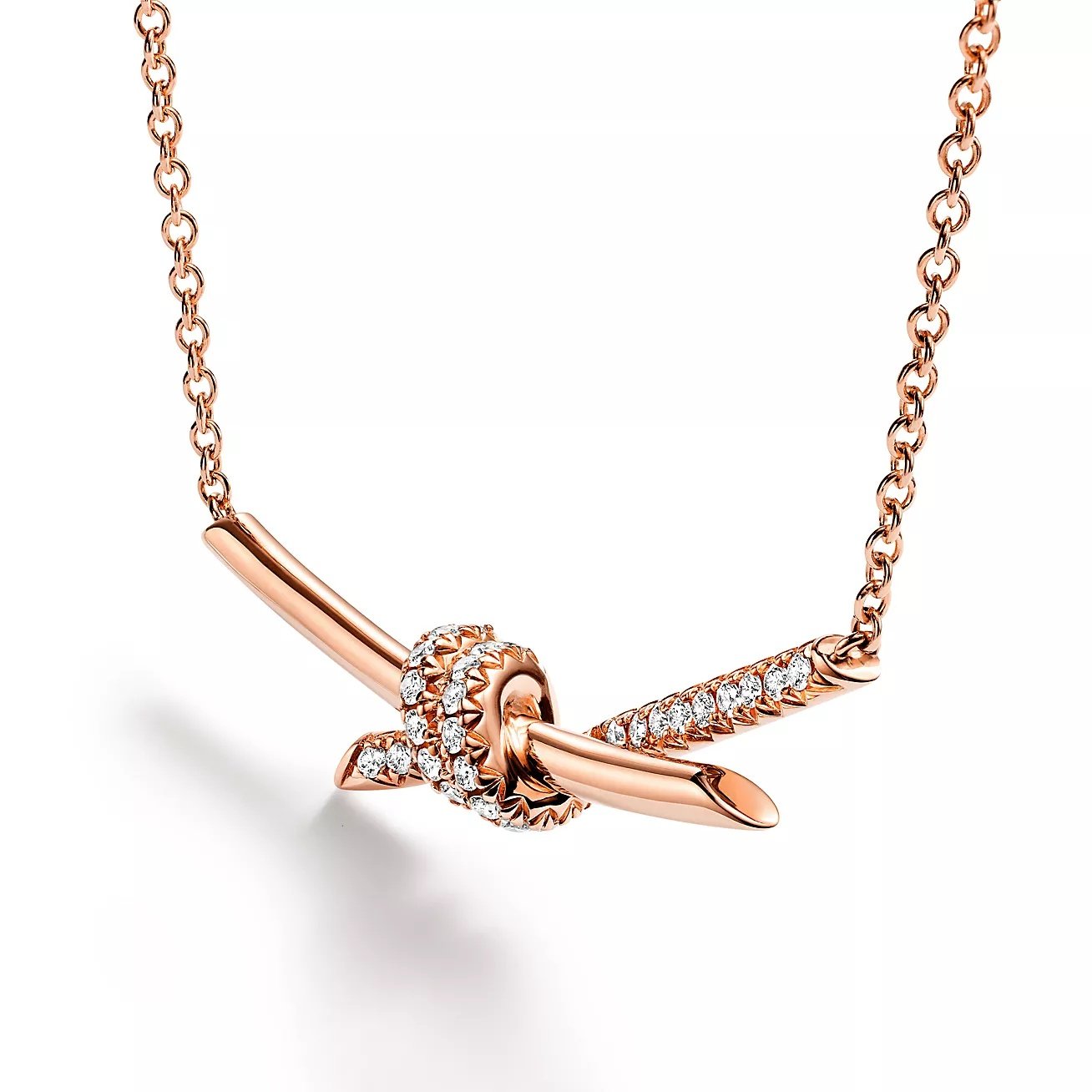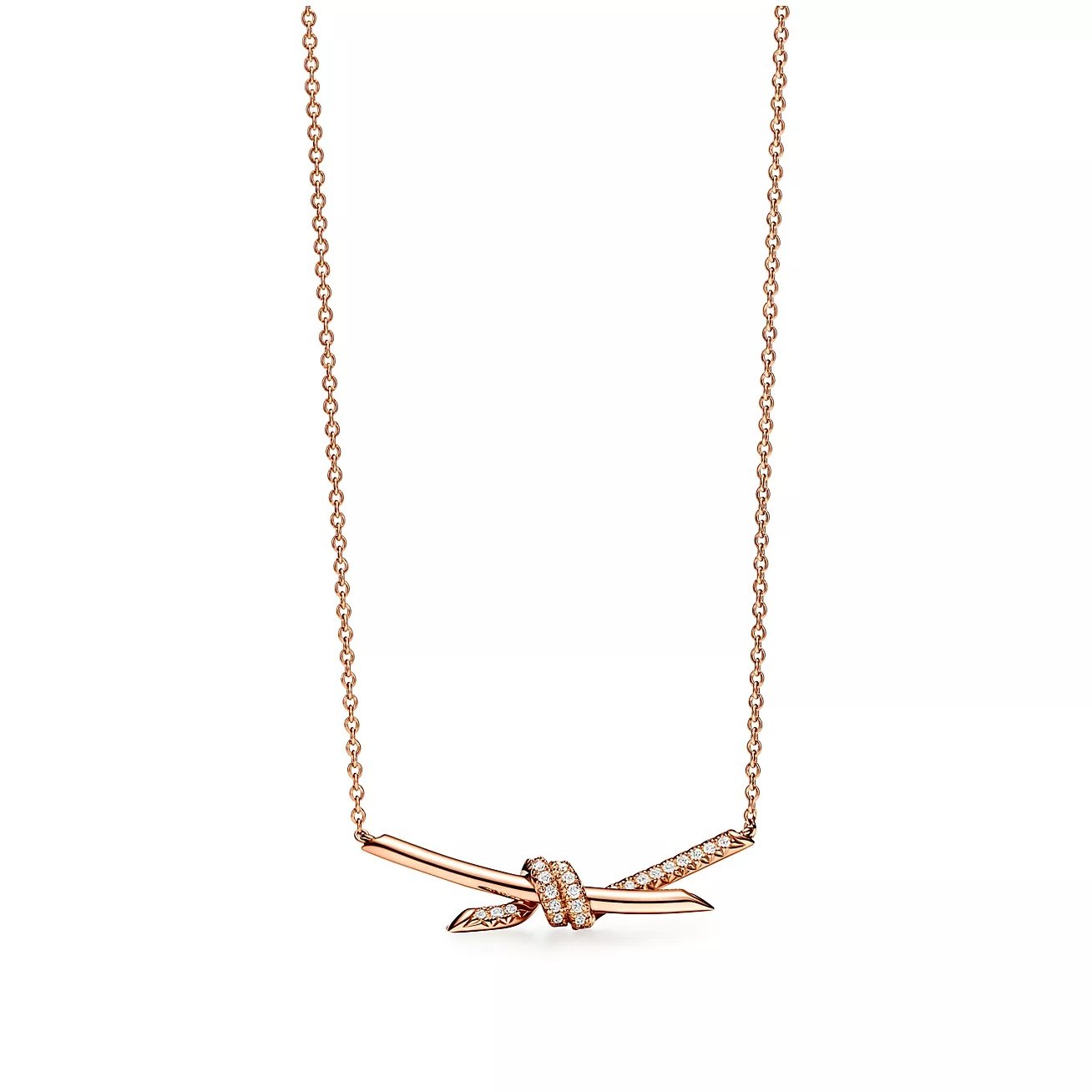 A minimalist knot pendant necklace accented with zirconia sparkle.