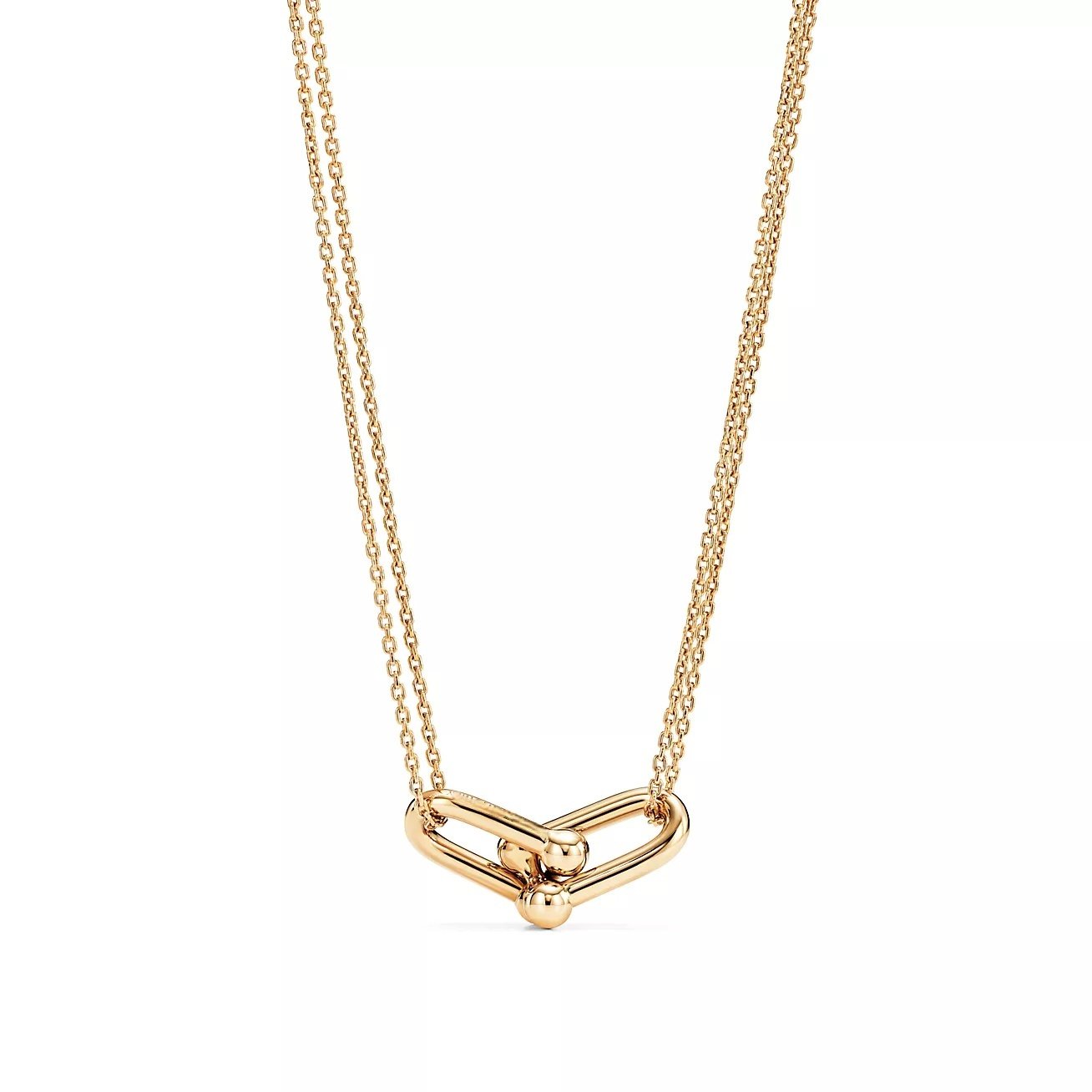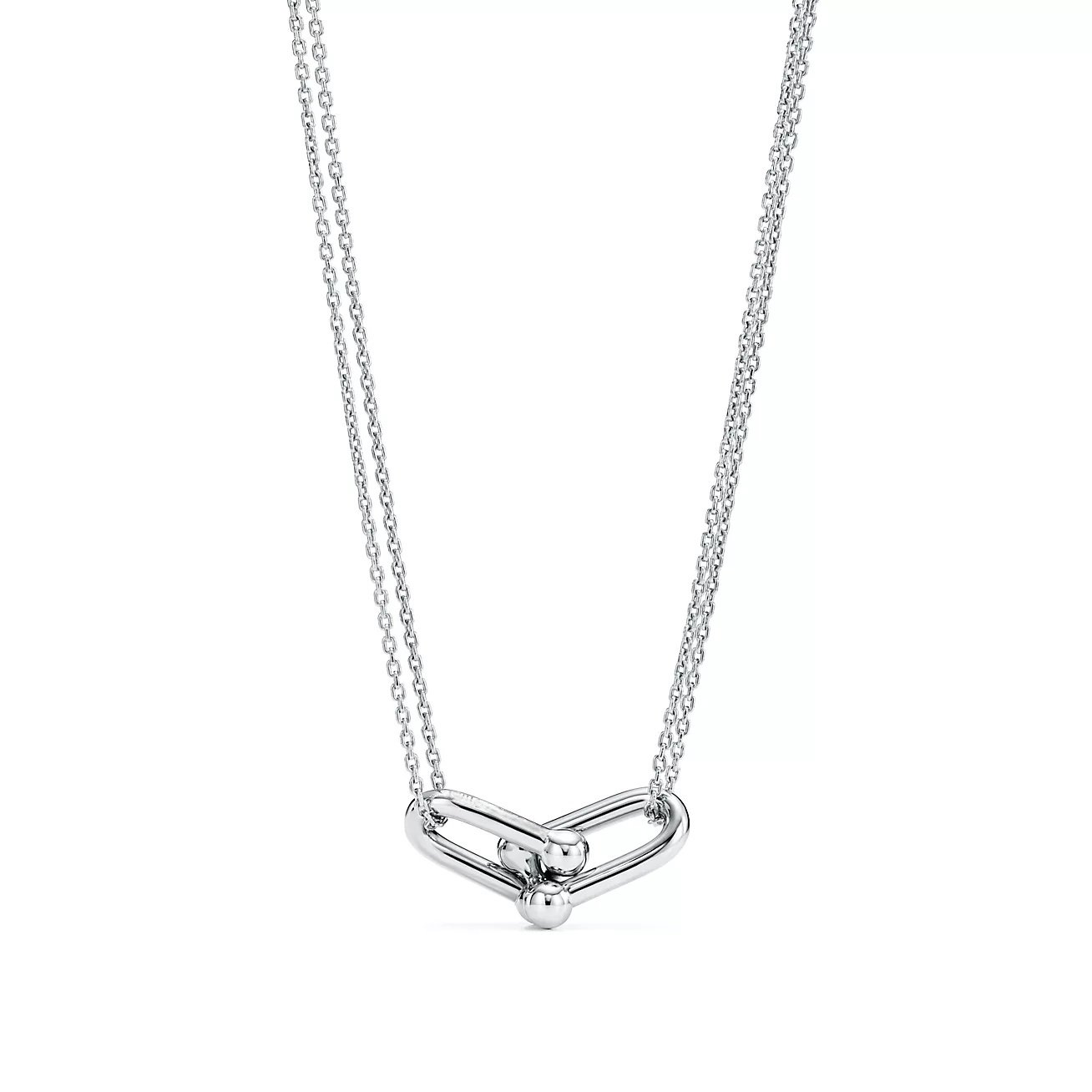 This large link necklace features an oversized chain design paired with a refined double-chain structure, creating a strong yet elegant statement.