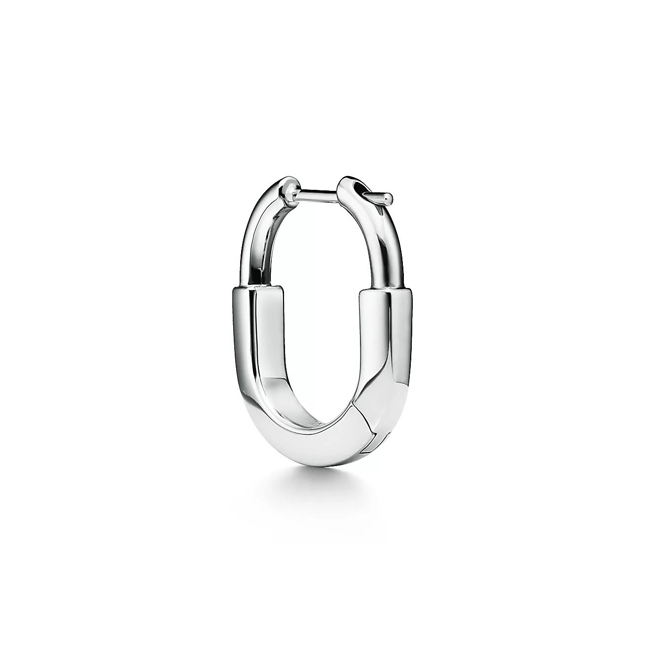 Minimalist lock-inspired hoop earrings with a clean silhouette.