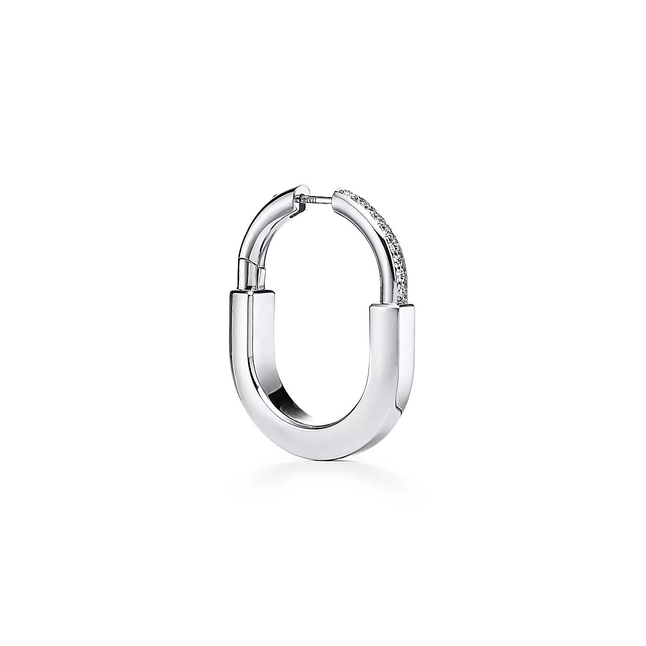 Medium-sized lock-inspired hoop earrings with sparkling zirconia.