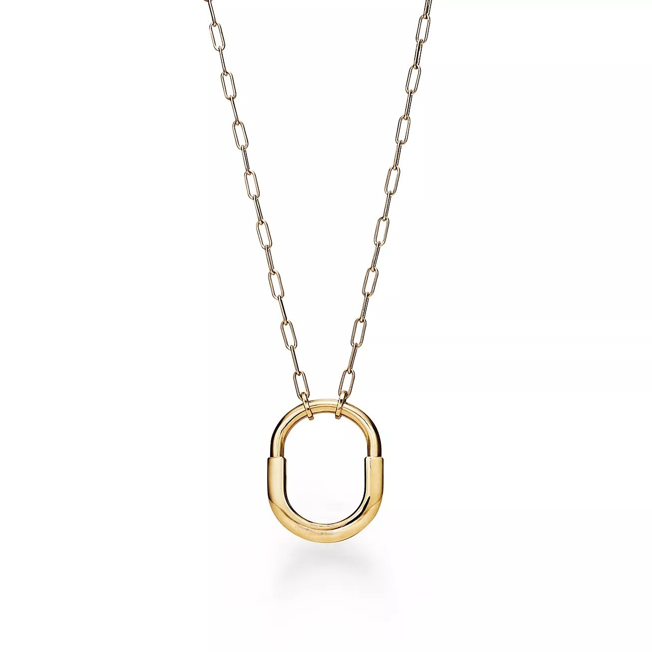 A refined medium lock pendant necklace crafted from durable V gold with 18K gold plating.