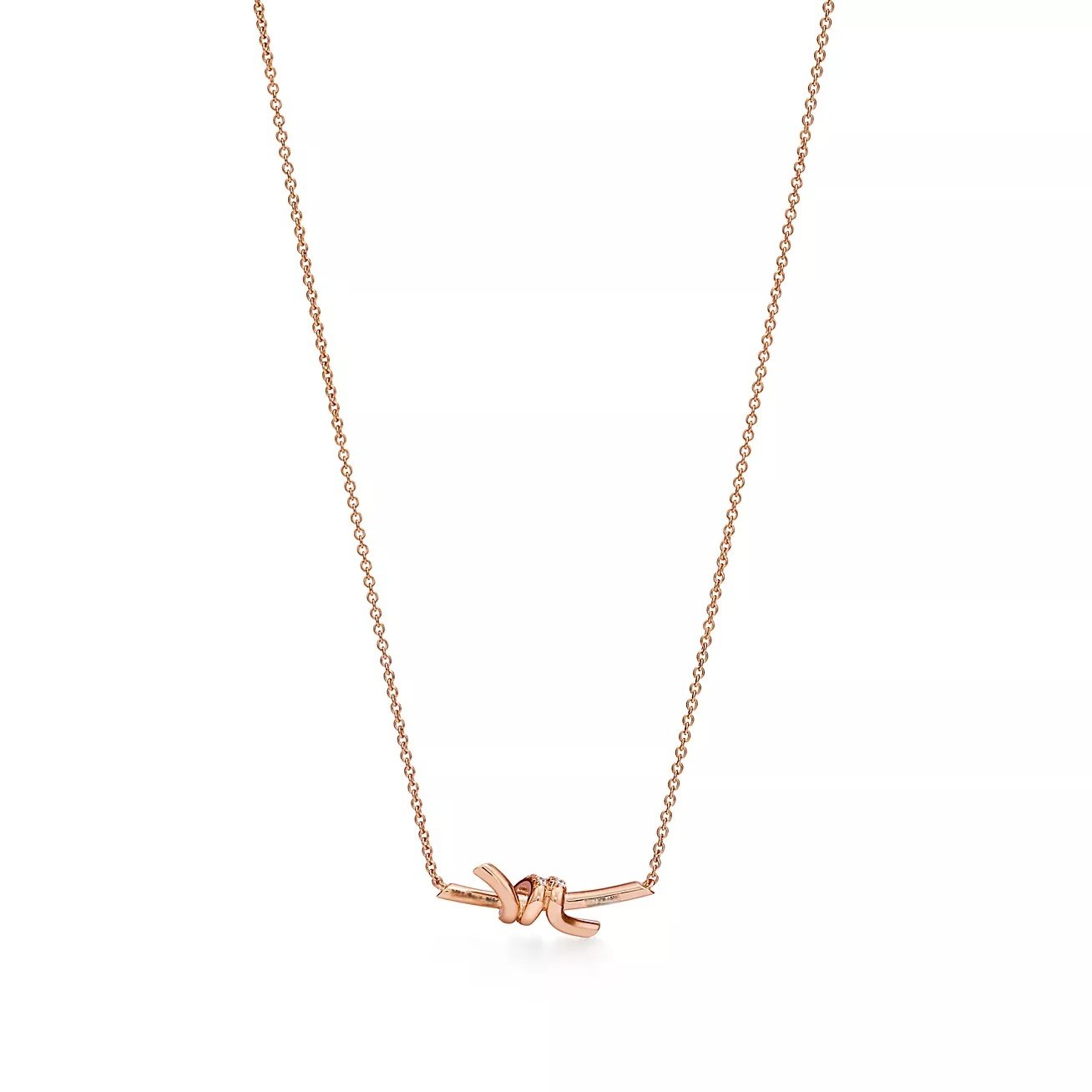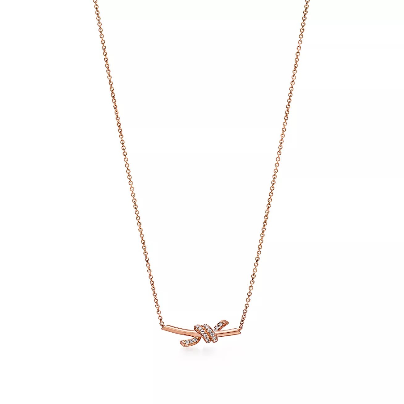 A delicate knot pendant necklace accented with sparkling zirconia.