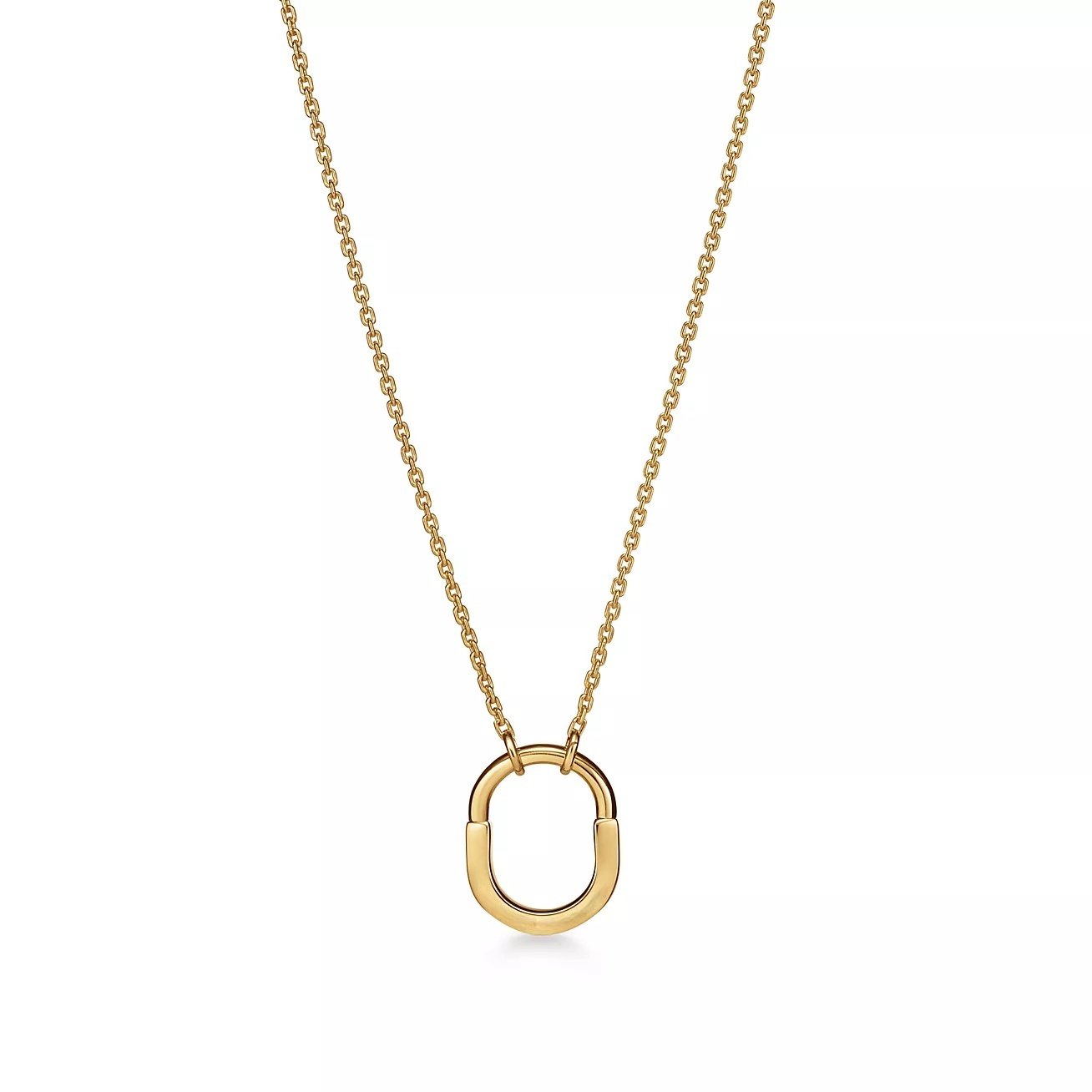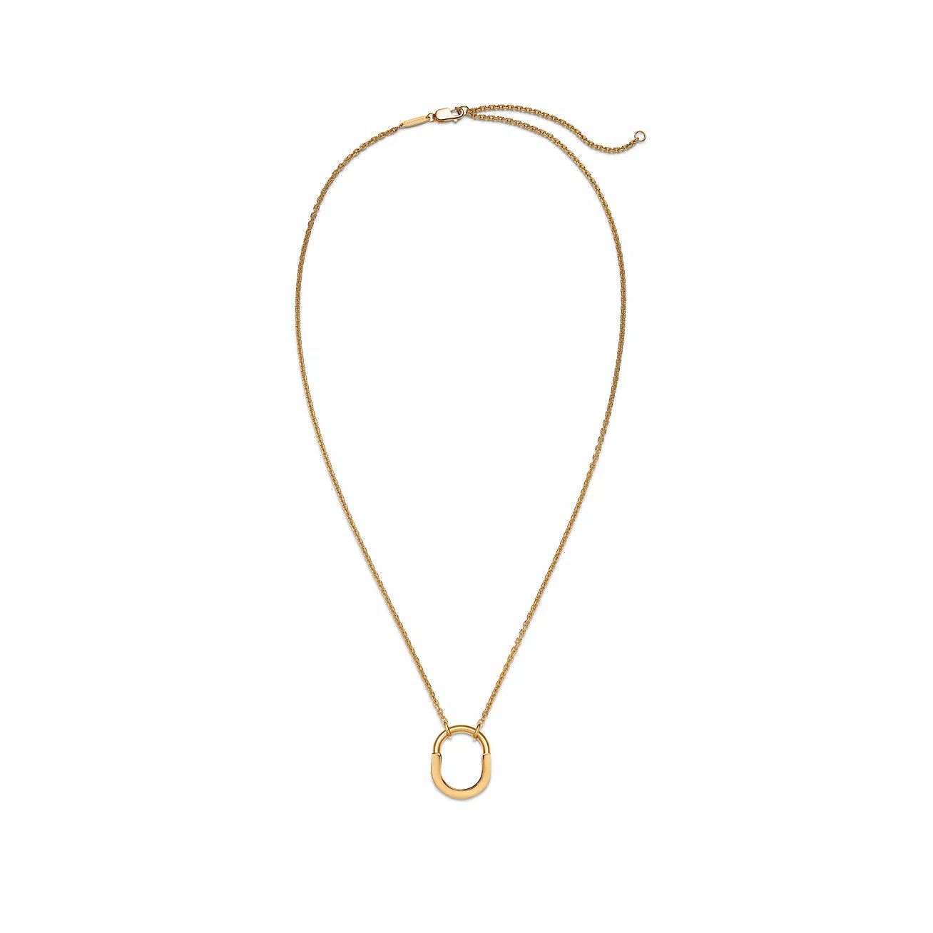 A minimalist lock pendant necklace crafted from durable V gold with 18K gold plating.